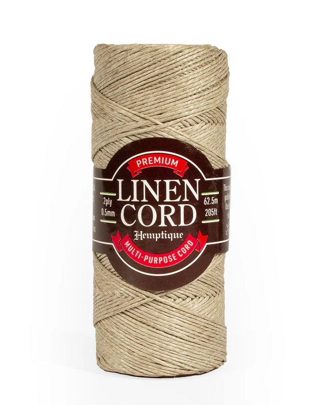 Sourced from the best Egyptian Flax, this flax cord is multi-functional. It has a smooth texture, natural color, and unrivaled strength, making it ideal for various craft projects, packaging, needlework, leather stitching, bookbinding, and more. Linen cord comes in two different thicknesses.
