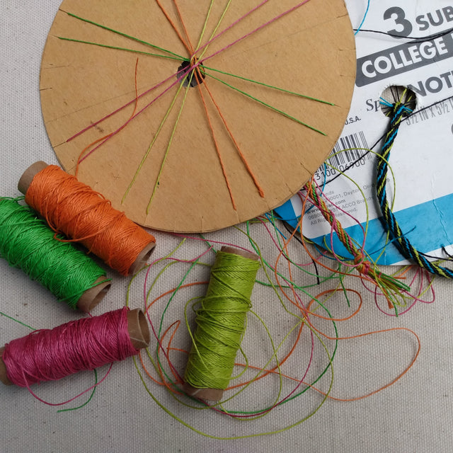 This kit includes materials to make 6-7 braids - use the braids for lanyards, bracelets, zipper pulls and more... The instructions include how to make your own braiding template from recycled cardboard (such as the cover of a spiral notebook). The hemp thread is smooth and does not tangle, so this is a great project for kids!