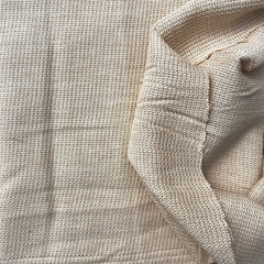 This fabric is made in Peru by a family run business that operates under Fair Trade standards and supports more than 160 local families.  Their organic practices keep the land free of chemical fertilizers and pesticides.  The cotton is hand picked, reducing the environmental impact and improving the quality of the cotton.  The colorgrown cotton used in this cloth is a wild variety native to Peru, and its cultivation has rescued it from extinction.  Tanguis white cotton is high quality and very absorbant.