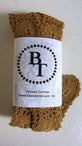 This beautiful hand-crocheted lace is made with the Godavari Delta Women's Lace Co-operative which provides equitable employment to women artisans through Fair Trade production. The designs are based on historic patterns and are made from organic cotton. Each card holds 3 meters of lace and is available in five naturally dyed colors. Approx. width = 5 cm. Please note: expect some variation in size due to this lace being made entirely by hand.